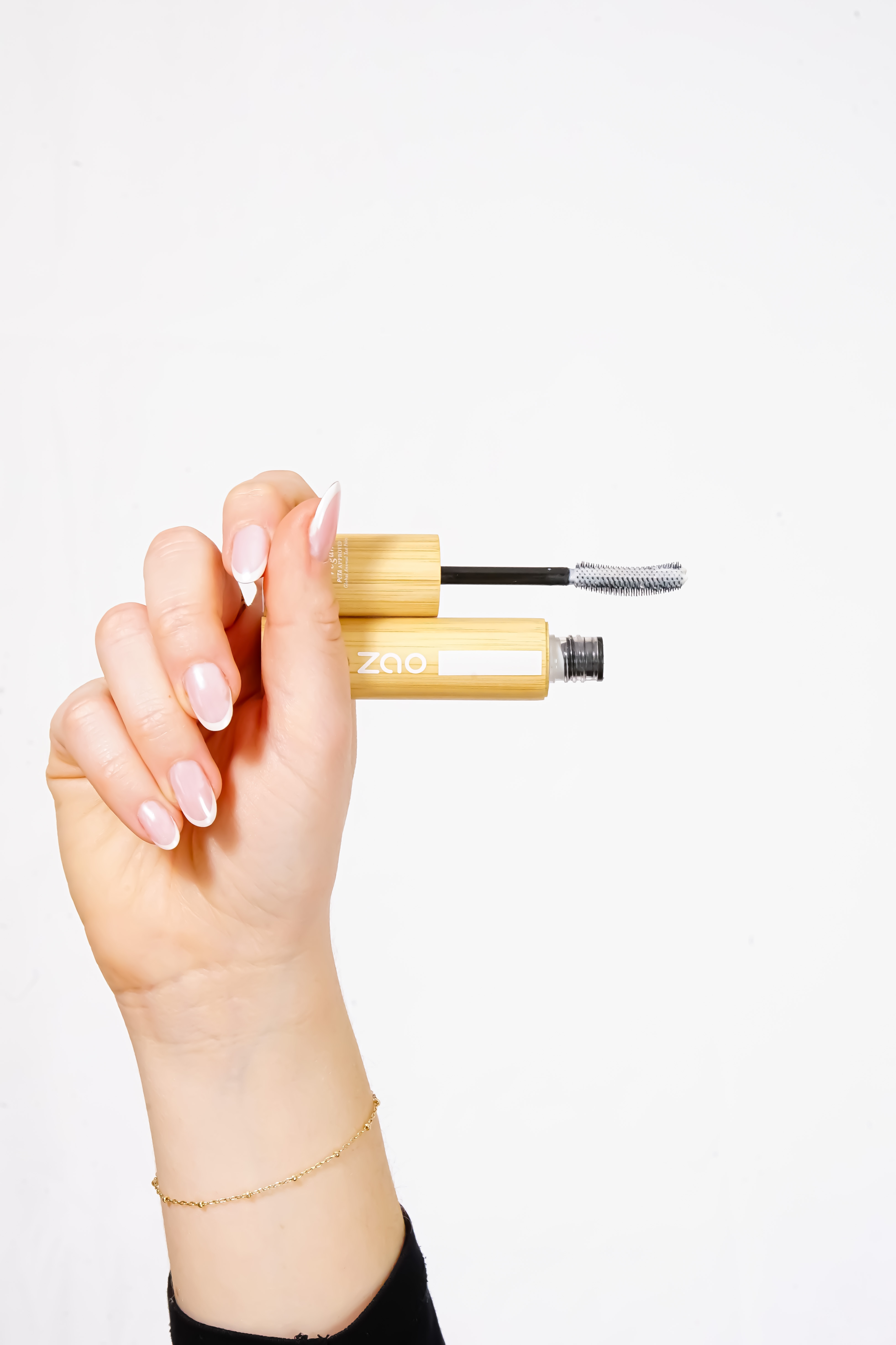 Voor maximaal volume breng je twee lagen mascara aan over de primerlaag. Breng de mascara grondig aan op de wimpers om de witte kleur volledig te bedekken.